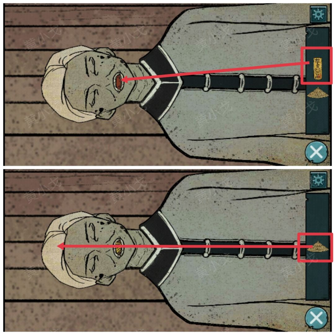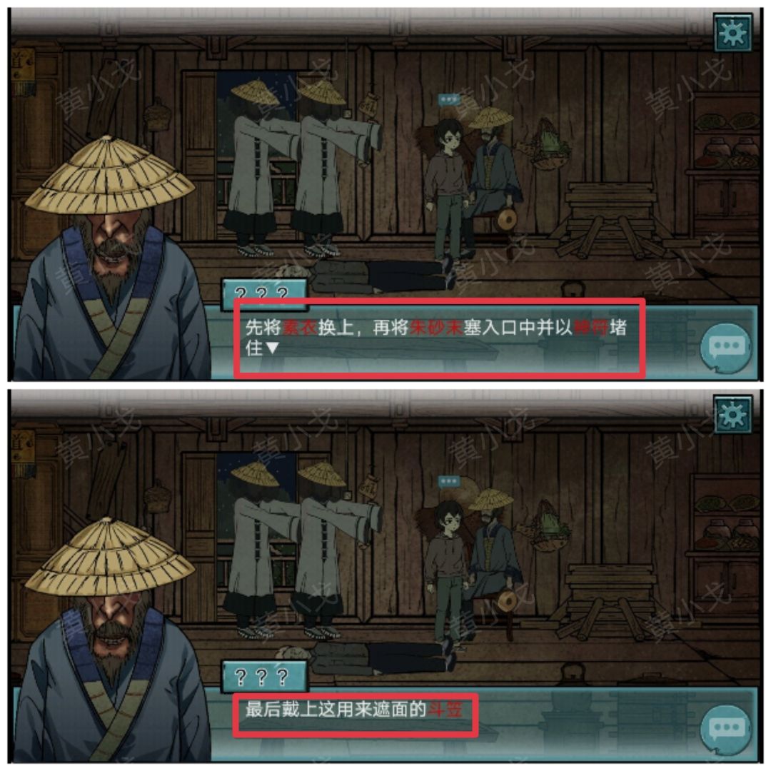 15.用【符咒】堵他的嘴,最后给他戴上【斗笠】,触发剧情
