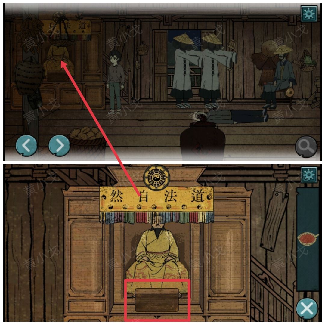 5.点击佛龛佛像前面的盒子,查看游戏说明,完成小游戏(133444)