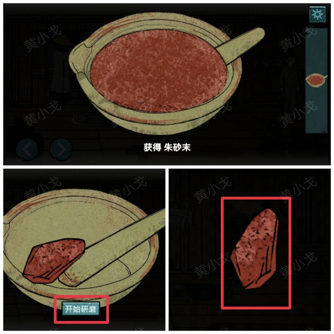 4.开始研磨;点击朱砂块,使其变成粉末,获得【朱砂末】