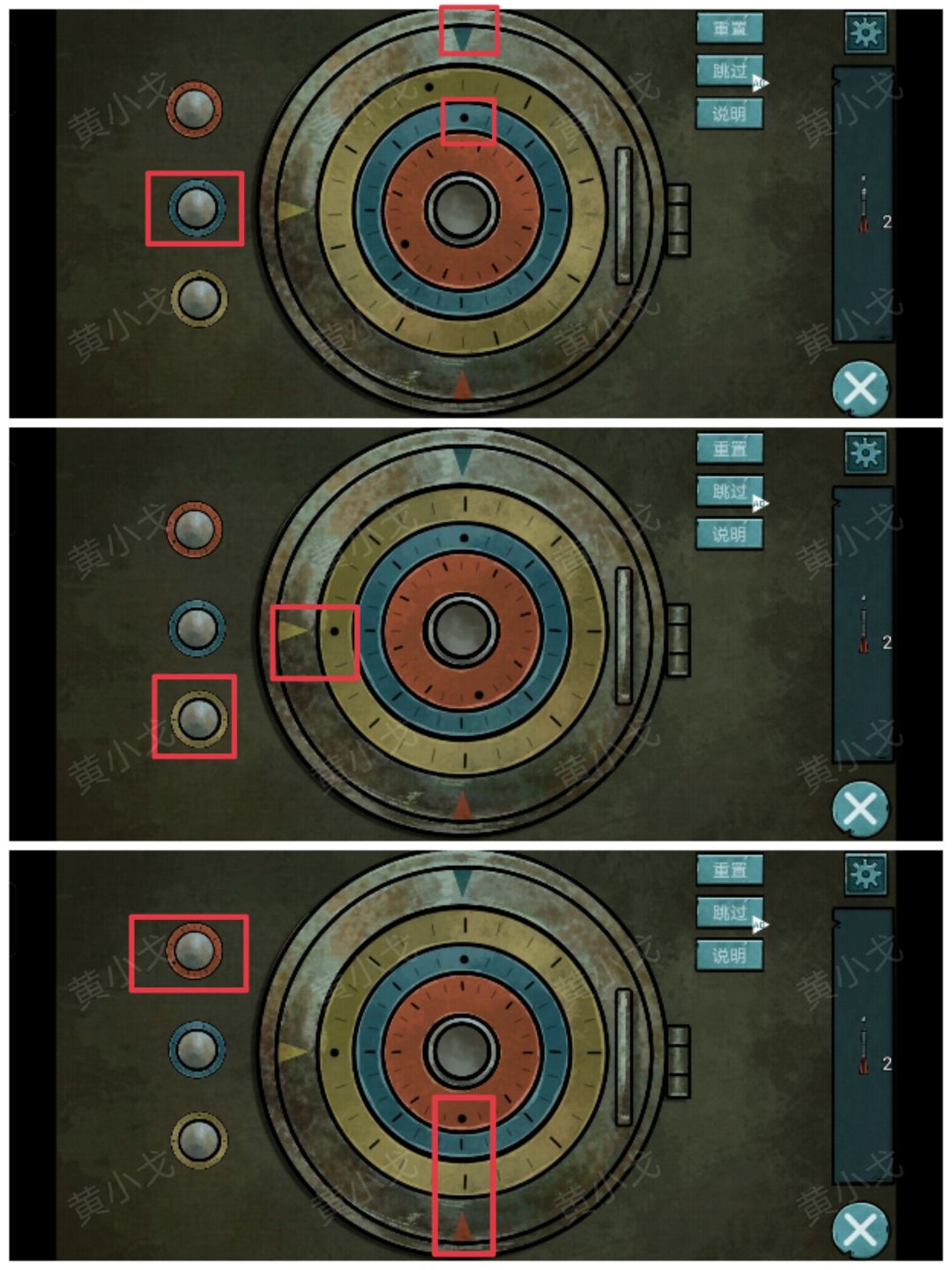24.点击密码锁,注意看灯亮起的颜色及顺序(红一、绿二、绿一、红三、红二、绿三)