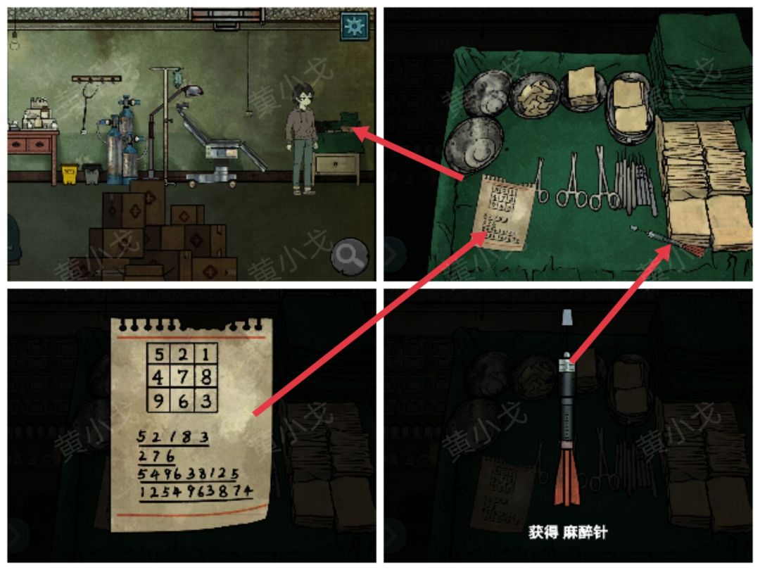 22.(诊所-场景4)点击柜子,获得【麻醉针】,查看便签内容