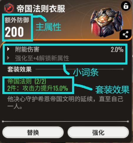 除此之外,对于单英雄战力的提升,更重要的是需要明白装备的主属性和小词条的区别。