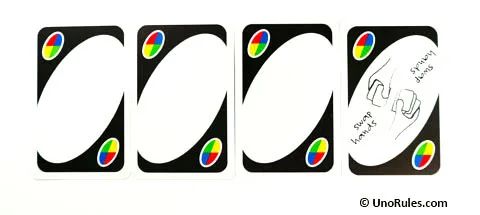 4. 惩罚牌累积:即所有+2和+4牌在有人收到惩罚前可以累积,直到有人没有惩罚牌最终被罚。