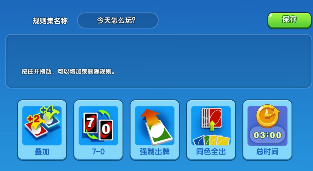 没错,这就是问题所在了!其实一起优诺的众多游戏模式中,很多都是吸纳了之前所谓的“村规”而产生的!受到玩家们广泛好评的“欢乐场”中,大家最爱见到的画面当然是有一位玩家被加牌到视线模糊头脑发昏啦!而在锦标赛、大奖赛和房间模式里,玩家还可以玩到0-7换牌的模式,能不能与队友做到心有灵犀就很重要了!