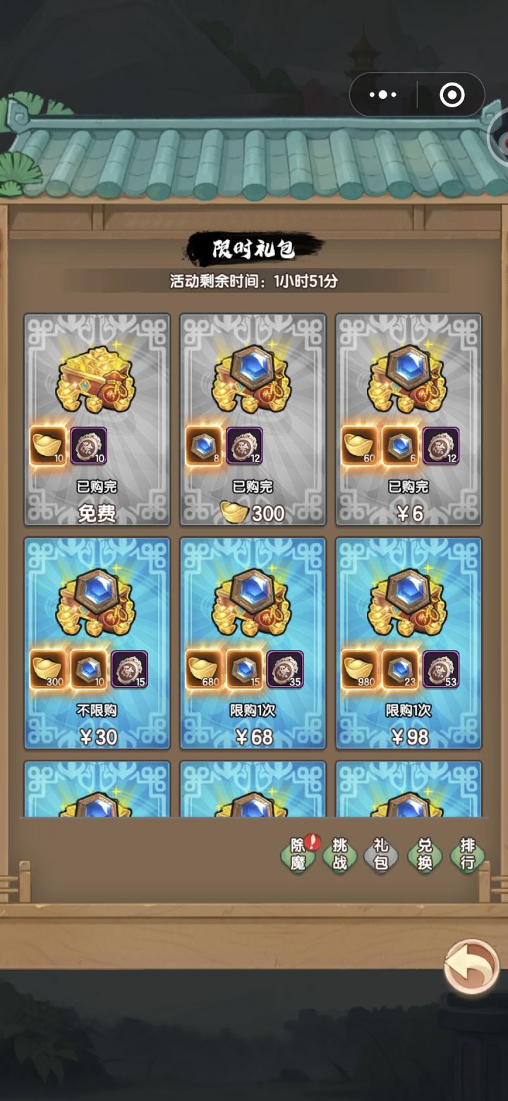 其次、除魔卫道活动期间【6元档】获得除魔令具体数量: