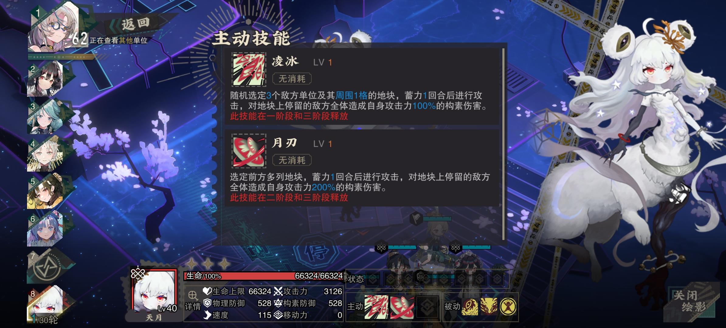 一技能就是随机三个角色周围一格蓄力一回合后落下攻击,一阶段和三阶段会用,二阶段直线蓄力,三阶段既直线又选人,满屏红