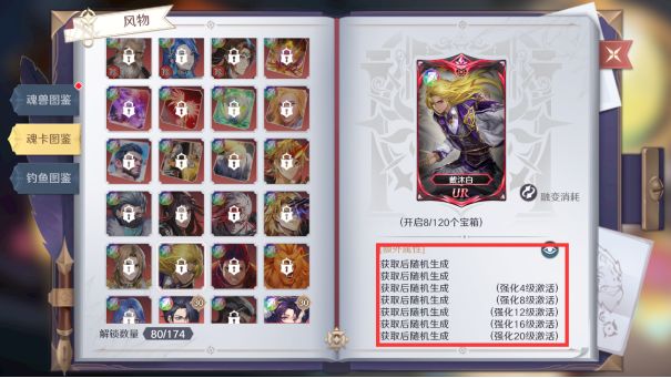 在图鉴处,可以看到SSR卡在升级后可以获得的额外属性。