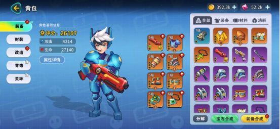 游戏的主要免费养成系统,战力提升的重要来源,提升品质需要大量装备,后期套装打造的基础。S级装备稀有度高,掉率低,装备缺口可通过抽奖获得。