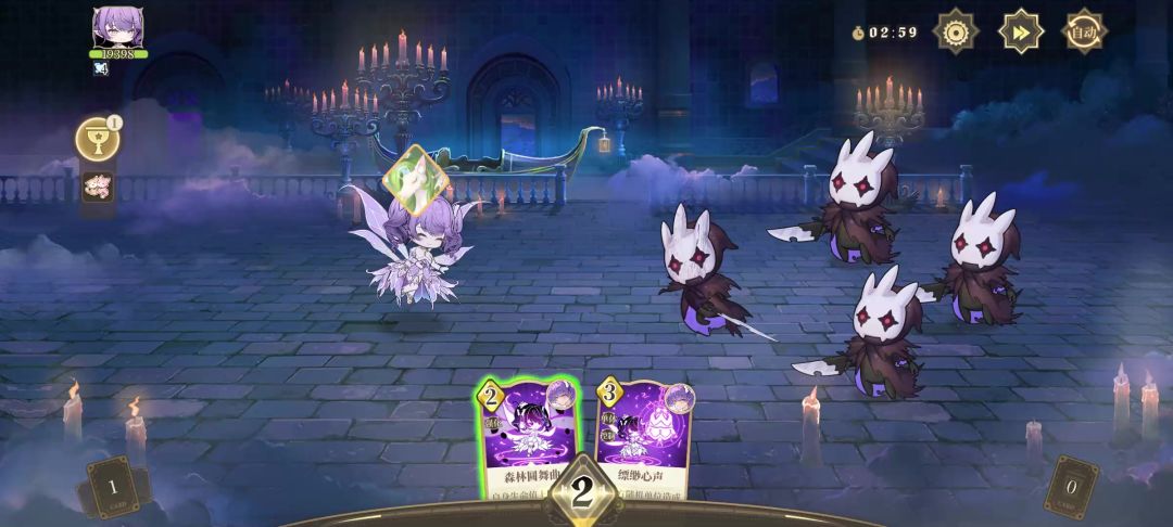 ♪「缥缈心声」与「森林圆舞曲」被抽到时,立即获得2层恋语效果,同时每秒叠加1层「梦舞」,每层梦舞使辛西娅造成的魔法伤害提升1%,打出该技能卡时停止「梦舞」的获得效果。