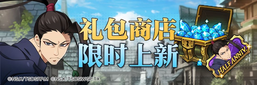 活动介绍:半周年特殊抽奖系列礼包限时上架!活动期间,购买礼包可获取丰厚的资源和游戏道具,快来礼包商店选购吧~