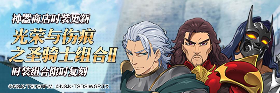 活动介绍:光荣与伤痕之圣骑士组合II限时复刻!欢迎进入神器商店进行试穿和购买。套装仅限活动期间售卖,快来试试吧。