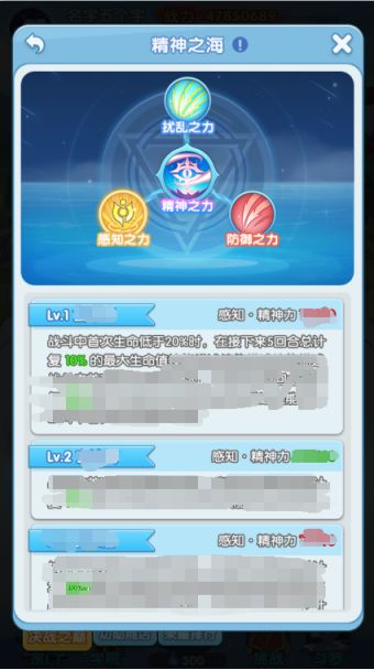 6、当“感知之力”、“扰乱之力”、“防御之力”三种类型的精神力达到X后,可解锁对应的技能或特殊效果;