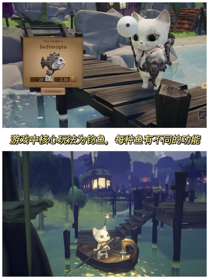 🌟 一款结合了轻奇幻风格和钓鱼艺术的终极RPG冒险游戏。玩家在游戏中将扮演一只属于自己的猫角色,进行一场前所未有的钓鱼之旅。这款游戏的特点在于它对钓鱼的独特和富有创意的表现,玩家需要使用各种钓鱼工具和技巧来探索半开放的世界,完成任务并捕捉各种各样的鱼类。