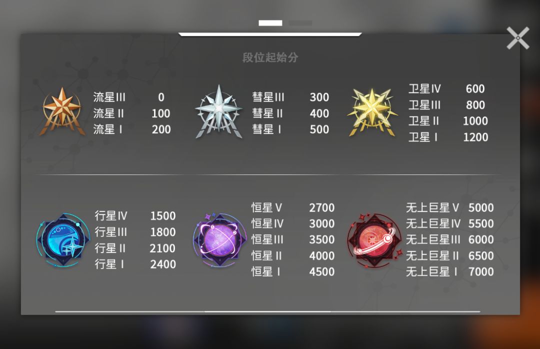 恒星Ⅳ(3000-3499):星晶*1600+恒星段位头像框