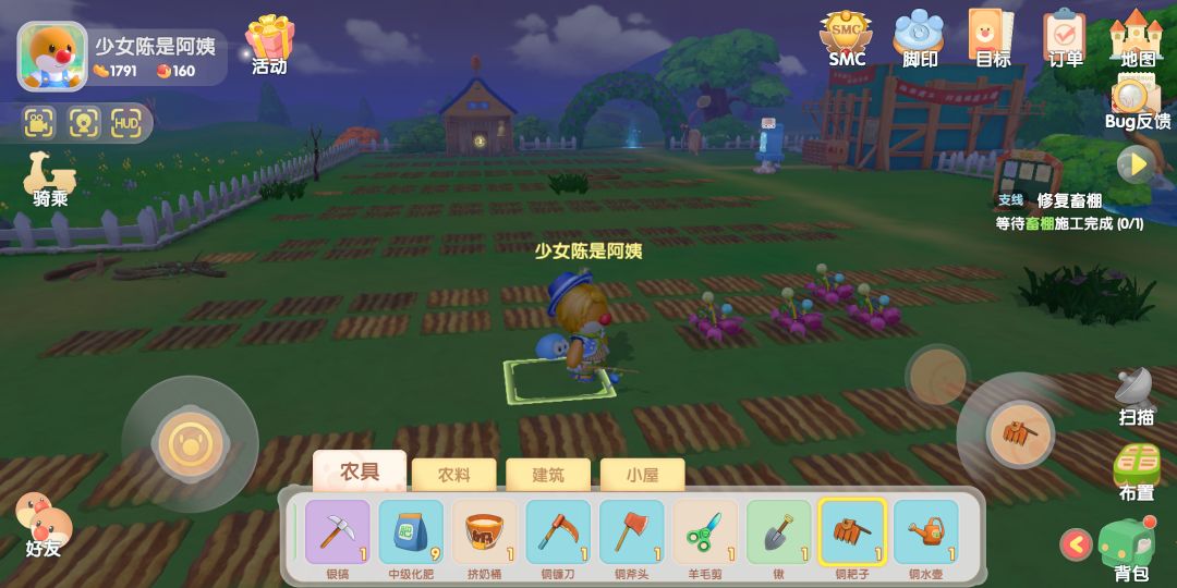 首先看图,有三块地请忽略,整体布局是基于我现在的水壶一次能浇三块地布局的。目的为方便手动浇水(尤其是好友帮浇水),不使用洒水器的情况下。