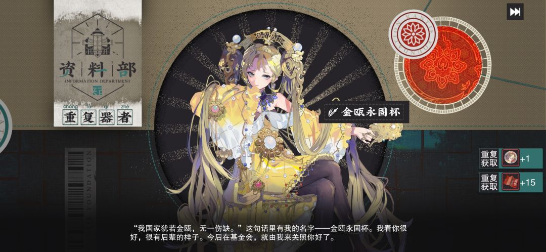 个人浅见:金瓯永固杯人设→为通晓金器+博览文物