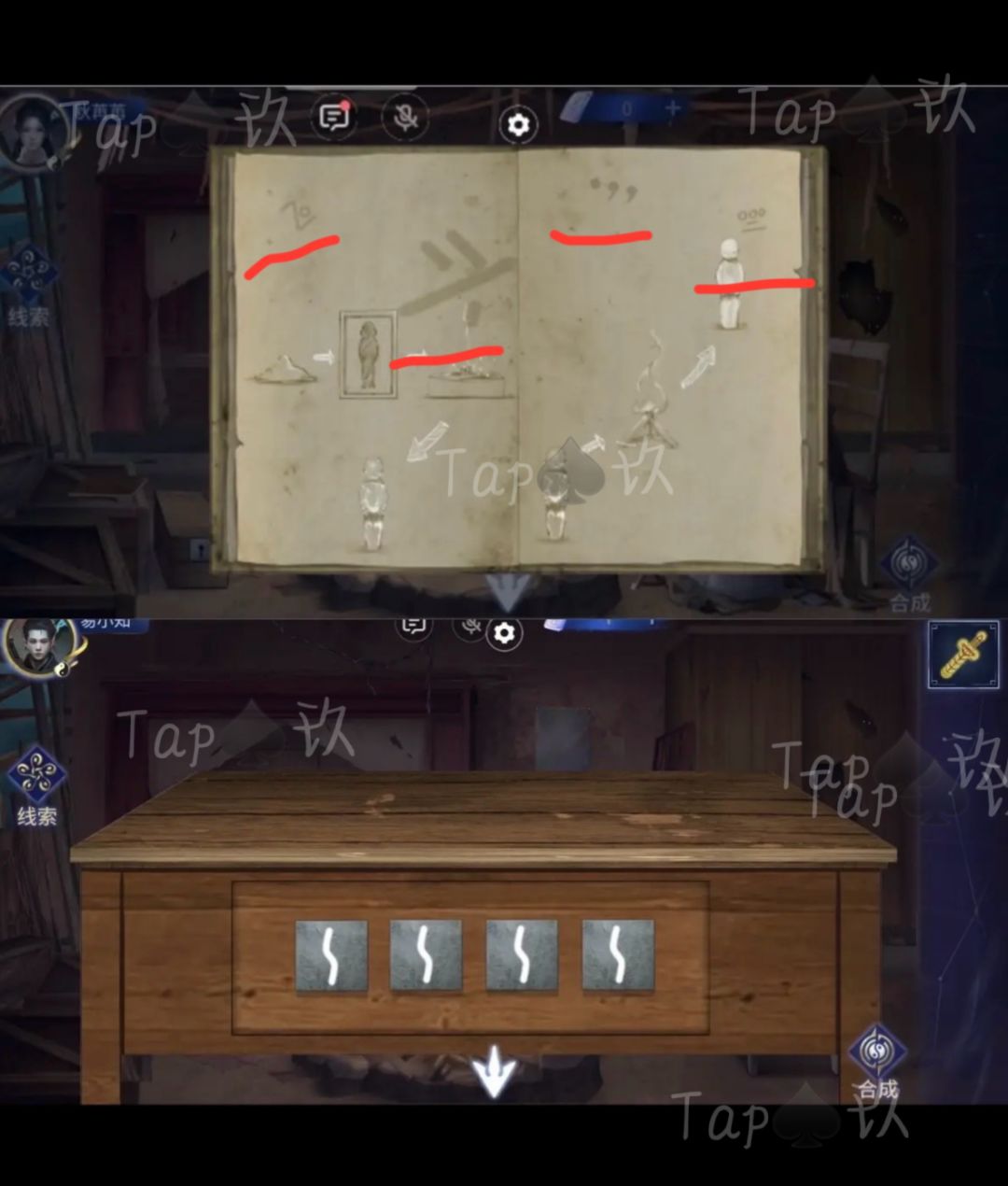 2-老人房,结合双方线索打开箱子获得【剪刀】,传给对方。