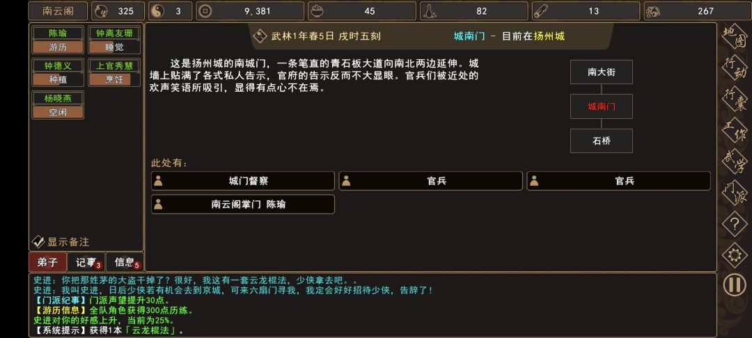(3)前往 扬州城→城南门→[人物:巡捕首领 史进]对话 选择:“我已经……”,完成任务。