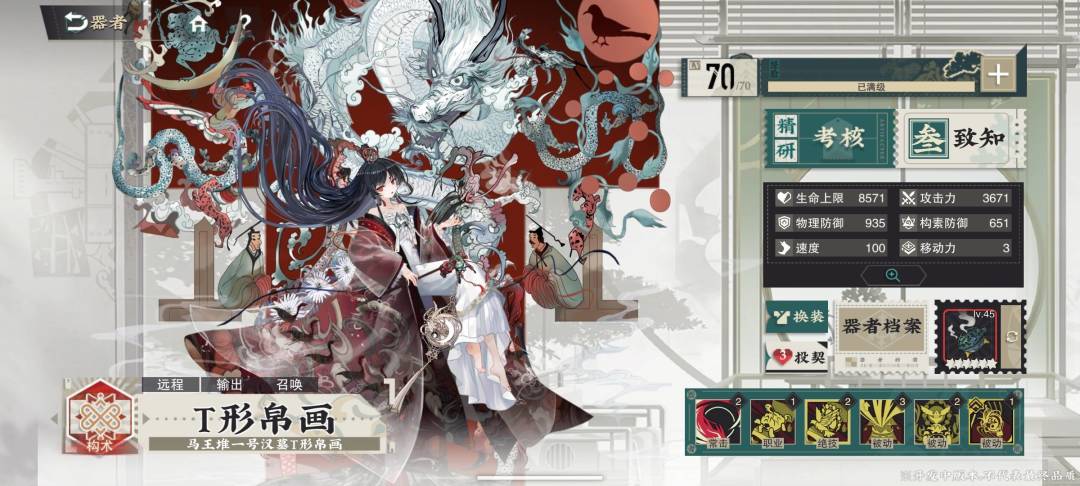 行动结束时对周围1格内的敌方造成T形帛画攻击力70%的构素伤害,触发后清除。