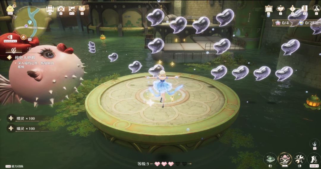 解谜的另一个机制是箱庭副本。本次测试里开放的副本“福鸣之井”地图设计相当出色,数条可探索道路交错,并将几个闯关玩法融入其中,让玩家在错综的空间里寻找路线、攀爬、控制跳跃来避免落水和躲避青蛙的攻击,挺有意思。