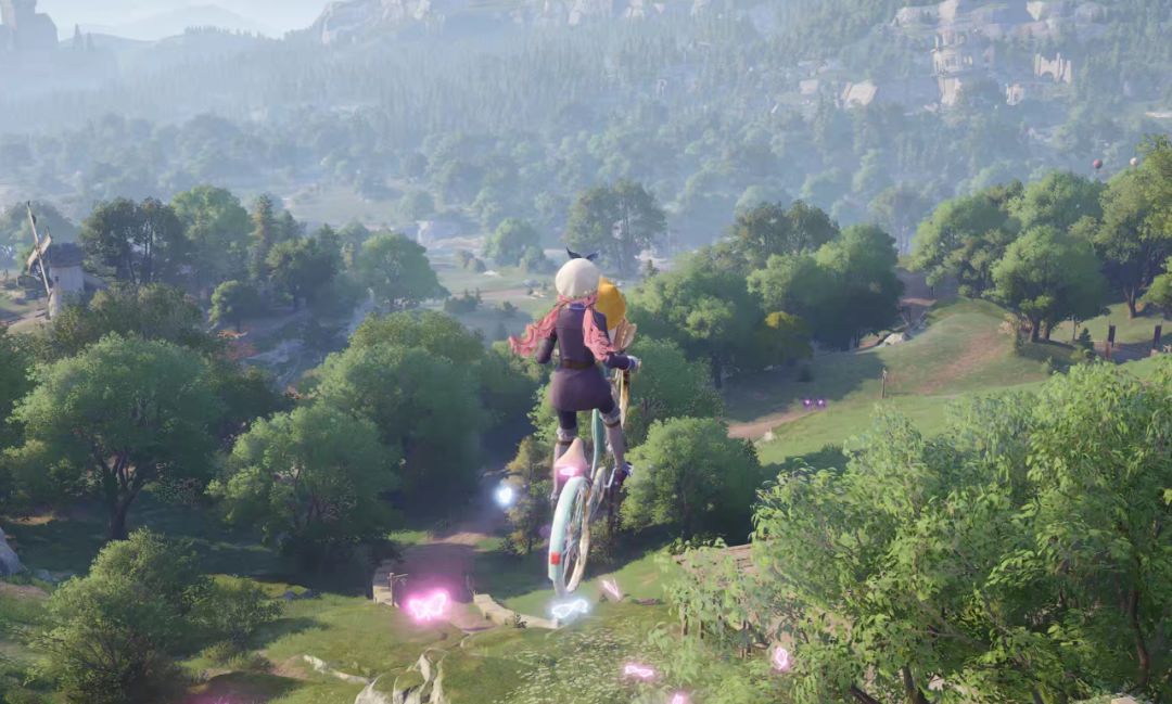 你可以感觉到,制作组在努力把暖暖式的温馨互动填充进地图里,营造出愉悦而治愈的氛围,这种设计思路在开放世界里十分少见。不过目前比较可惜的是,这部分设计都显得略为浅尝辄止。比如,自行车只能在固定区域骑乘,并非想象中那样可以随时召唤出来;热气球的运动路线是直上直下,不能在高空中飘移,更像是一种辅助进入空中获取道具的手段。这让原本十分有趣的玩法,陷入了一次性游玩的窘境——不过我们同样相信,目前仅仅是初次线上测试的无限暖暖,可以在后续制作中继续进行完善。