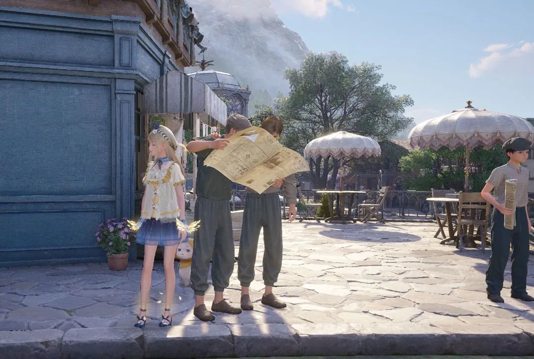 游戏显然在美术上投入了非常多的精力。就拿本次测试开放的“花愿镇”来看,作为玩家进入游戏后的第一个城镇,细致的NPC服装、建筑样式、阳伞草坪装饰,都展示了一个称得上十分精致的英伦小镇。