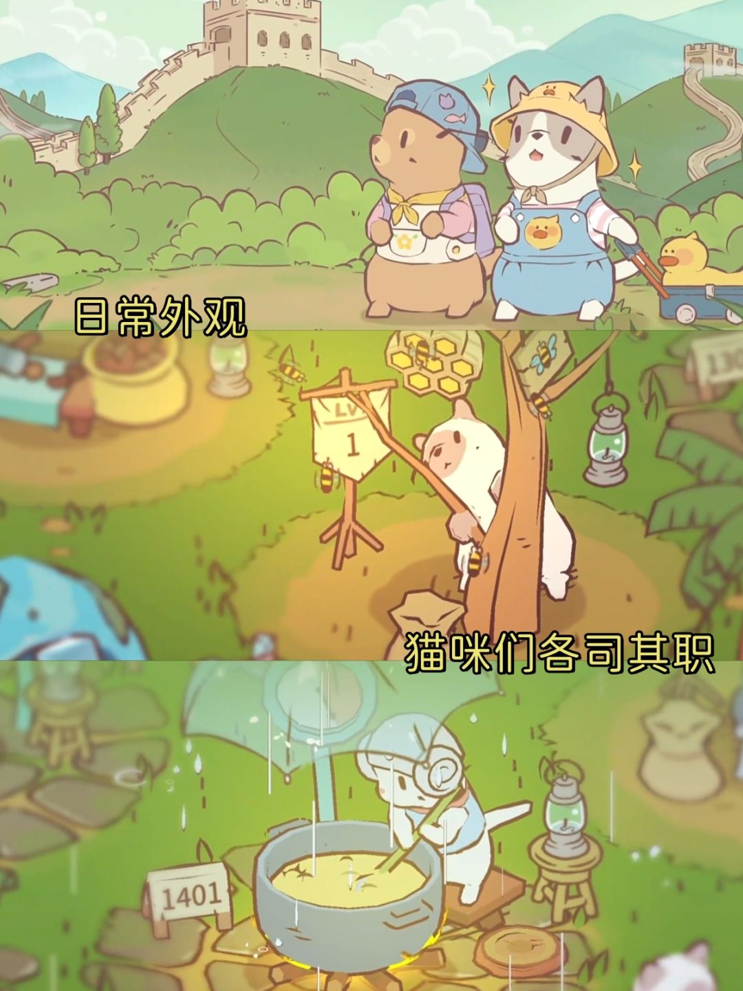 ✨一款治愈系放置+模拟经营的养成小游戏,画风可爱,满屏的小猫咪。