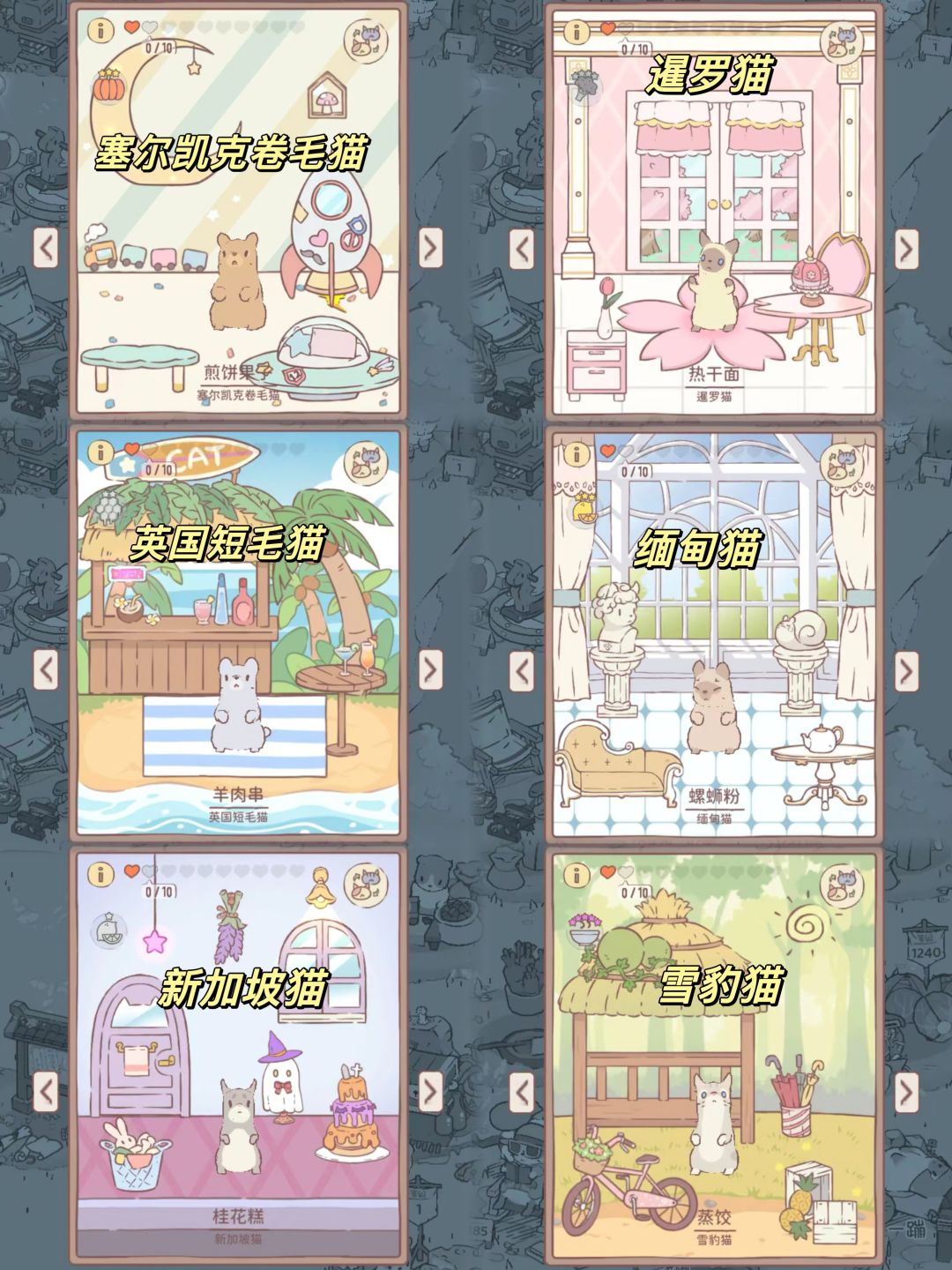 目前为止我一共收集了40种猫猫,我给每个小猫咪布置了不同风格的小屋,太满足啦!快来晒晒你们的猫咪给我康康~