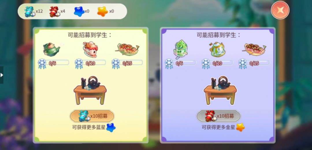 消耗两种不同的卷轴可进行不同的招募,学习后也可以获得蓝色、红色两种不同的经验星星。