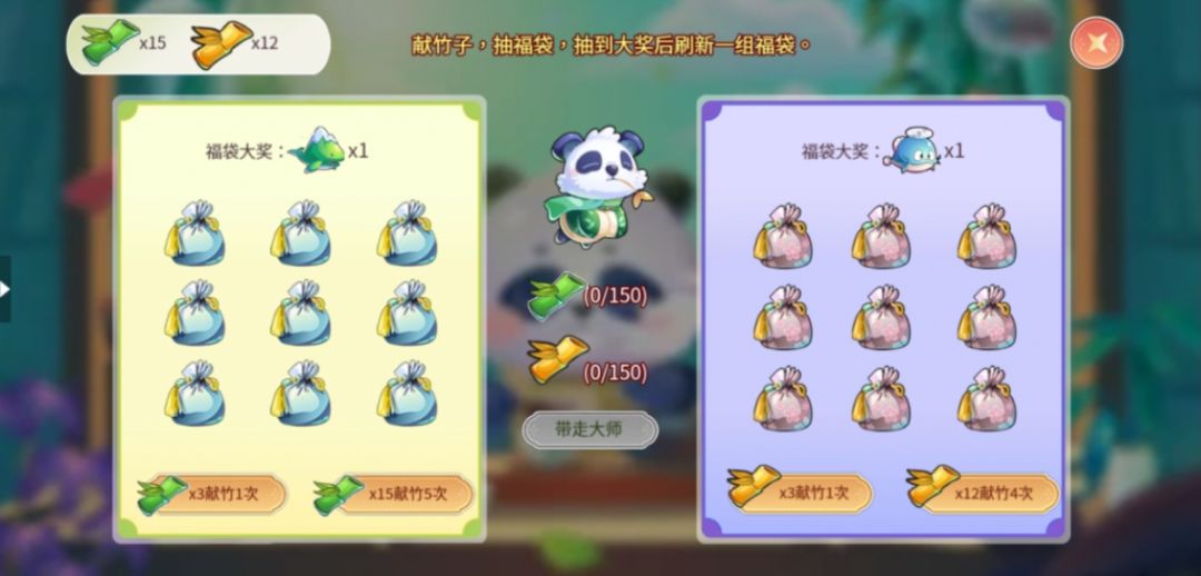 献竹子,抽幸运福袋。