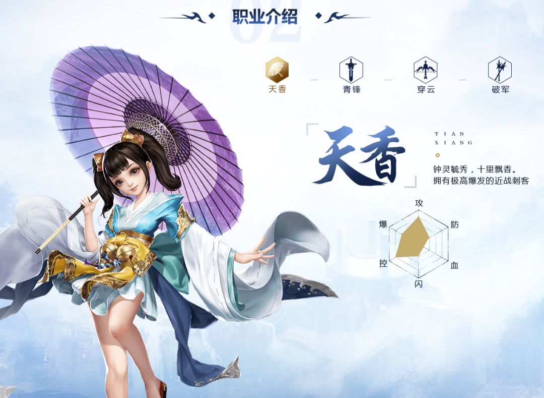 职业:天香攻击距离:远程职业定位:天香是游戏中地道的刺客形象,具有极大的爆发能力。职业简介:天香在输出效果和技能方面表现卓越,诠释了钟灵毓秀,风华绝代的形象。但他们的生存能力较差,容易被击败。虽然如此,天香的魅力仍然吸引了许多玩家。