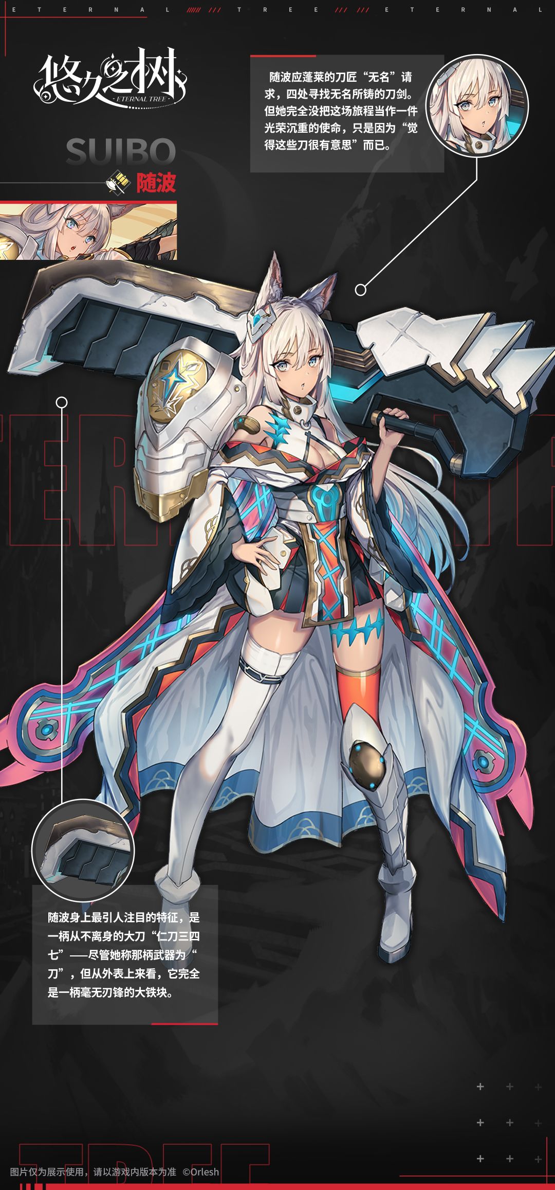 随波,无所属的流浪剑士,出生于卡鲁亚拉地区。幼时她邂逅了蓬莱的刀匠“无名”,听了他的请求后离开了卡鲁亚拉大森林,开始四处寻找无名散落在大陆各地的遗物——需要强调一点,随波完全没把这场旅程当作一件光荣沉重的使命,或是什么要努力完成的人生目标。她对自己踏上寻刀之旅的解释,仅仅是“觉得这些刀很有意思”而已。