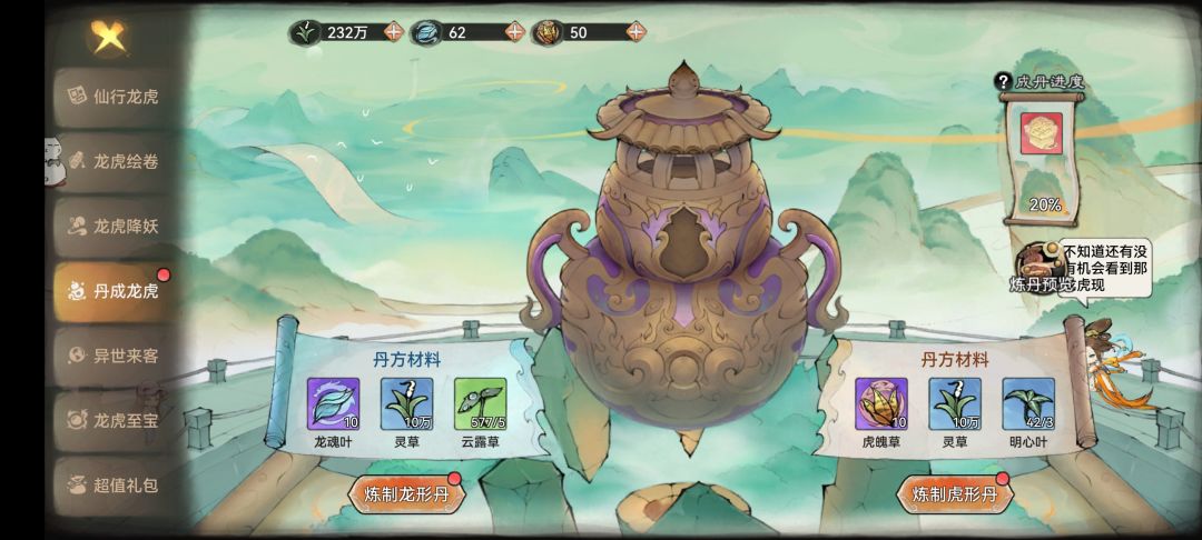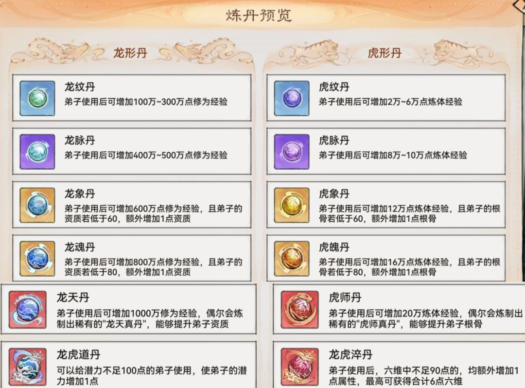并不是每次都能炼制最下面几种丹药,必须经过3次控火后出现虎现,龙现,龙虎丹成,才能炼制出最下面几种丹药。