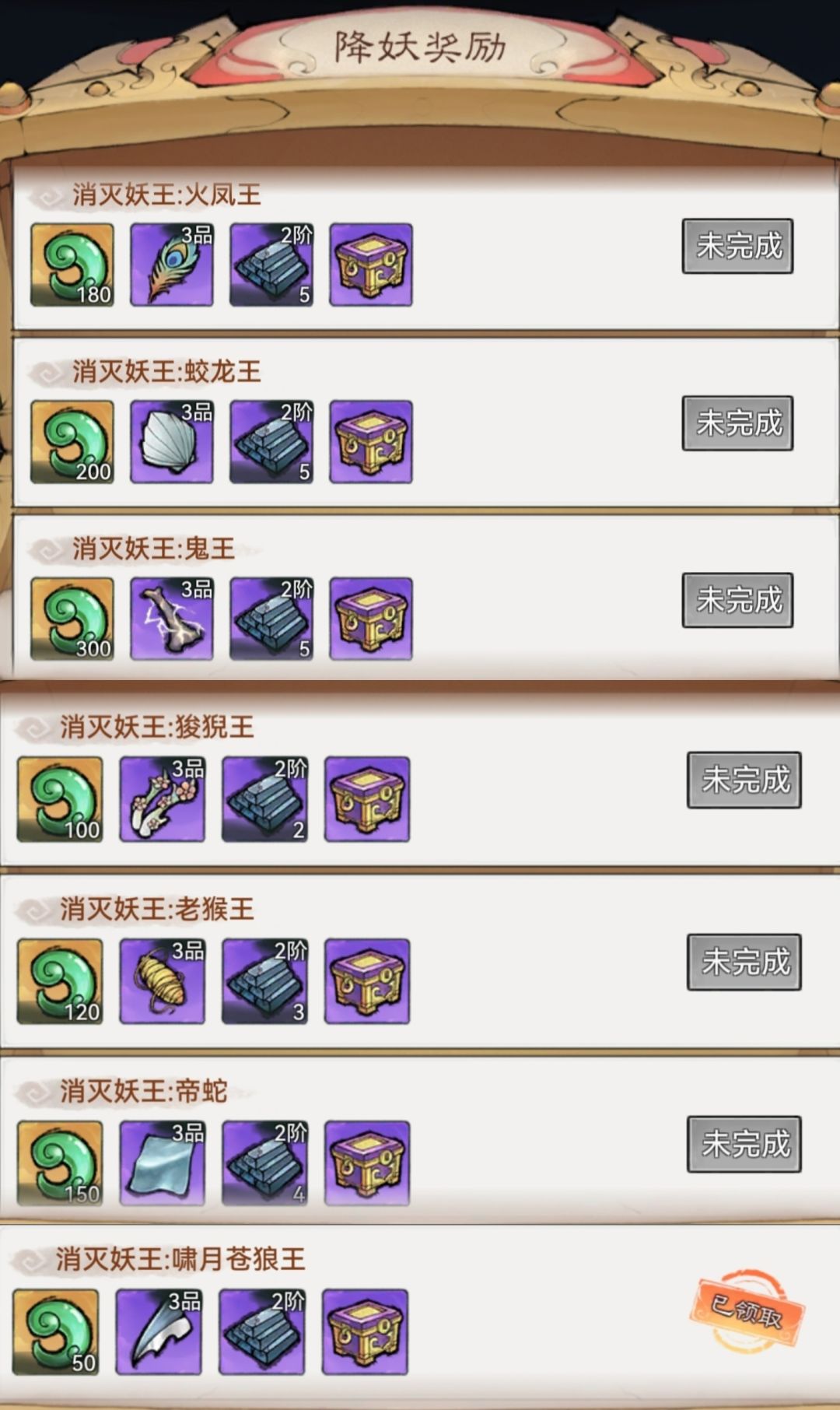 每次降妖都会获得炼制[龙虎丹]的材料 。