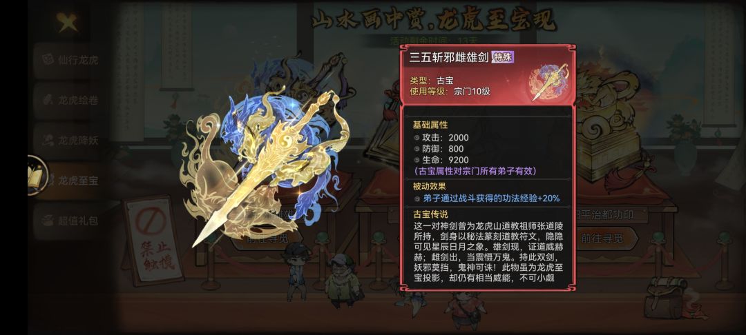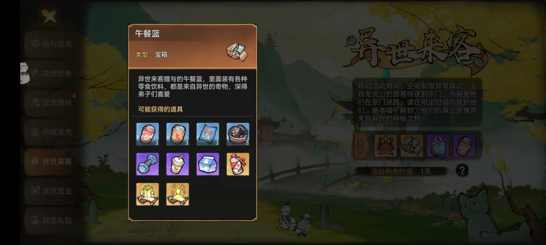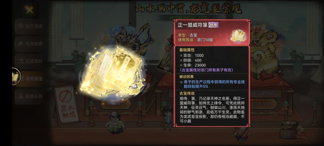 活动期间宗门会出现龙虎山的游客,完成他们的任务将可以获得他们身上所带的奖励。