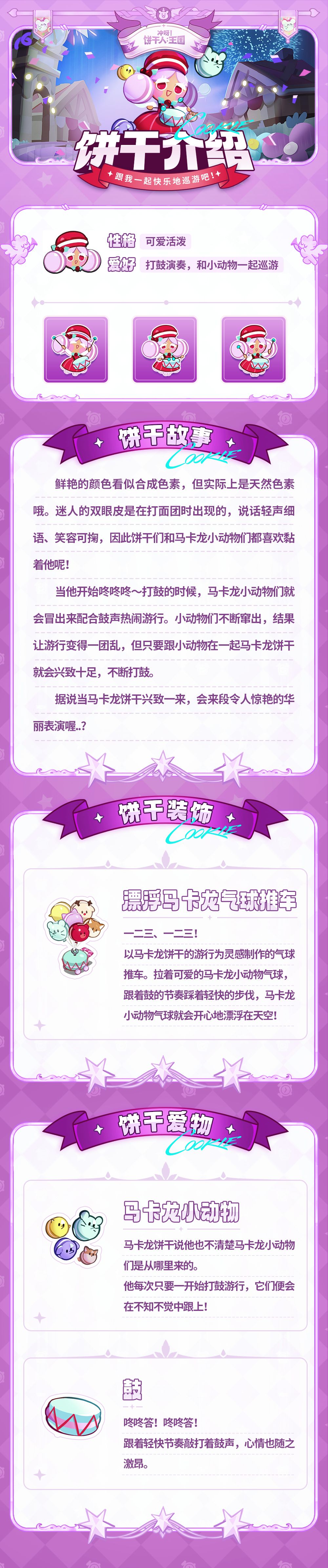 当他开始咚咚咚~打鼓的时候,马卡龙小动物们就会冒出来配合鼓声热闹游行。小动物们不断窜出,结果让游行变得一团乱,但只要跟小动物在一起马卡龙饼干就会兴致十足,不断打鼓。