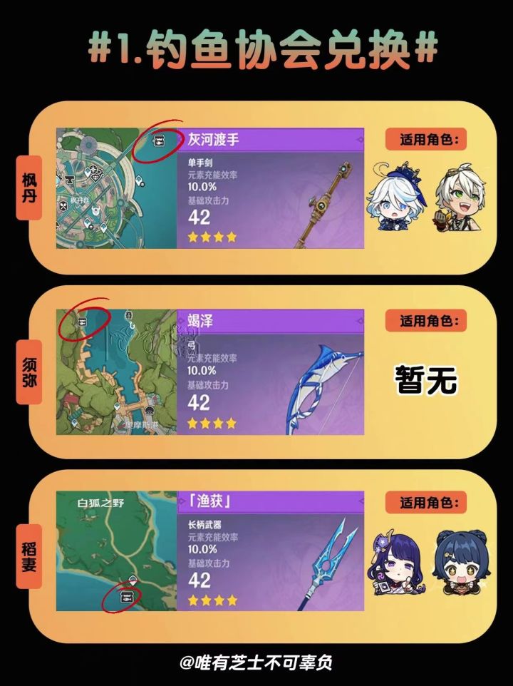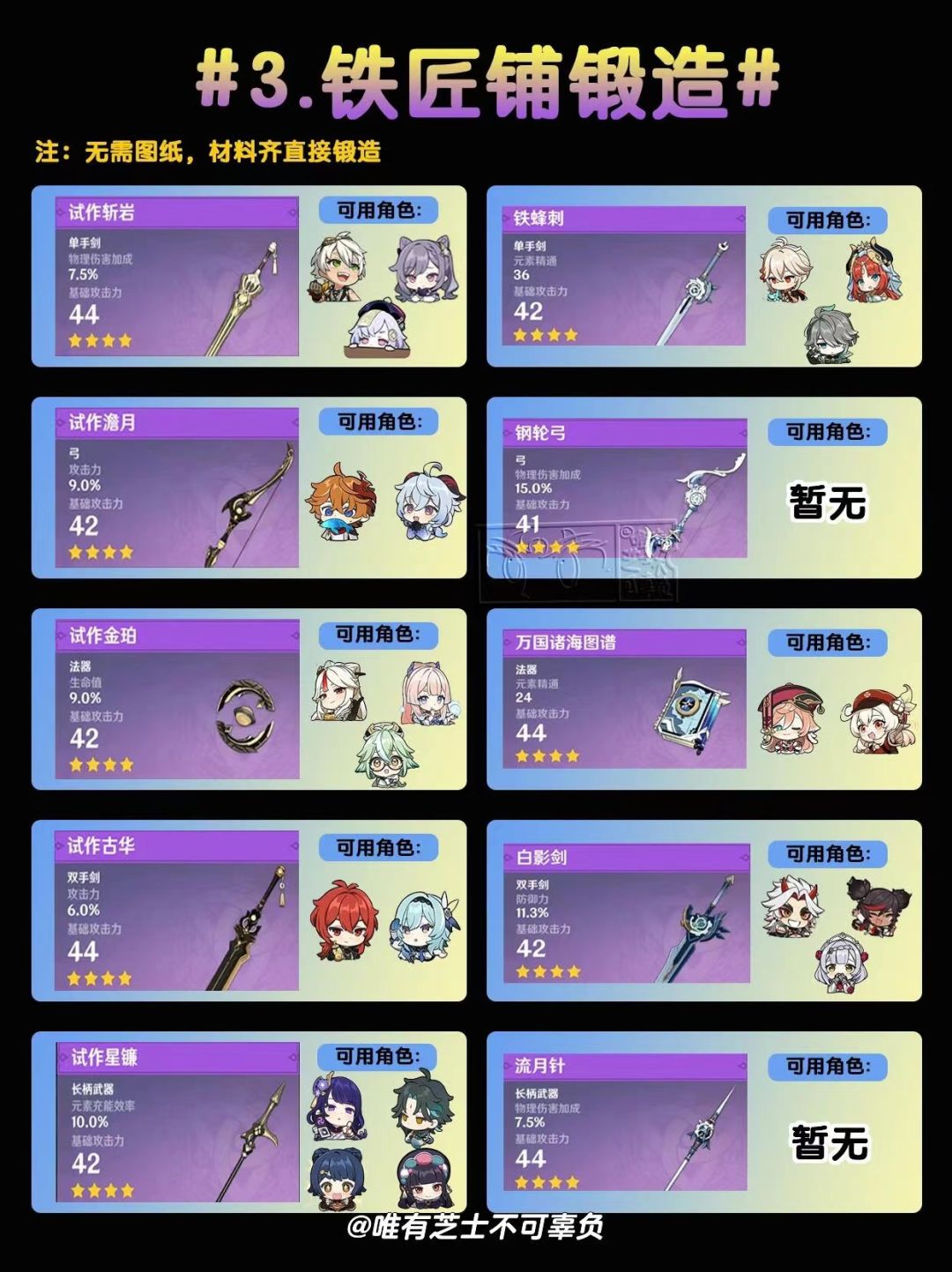 可用角色栏仅供参考,这些武器大多是做过渡使用,要不要花时间做任务得,以及是否要精炼看个人~ 这里只是提供获取途径,方便大家查找!