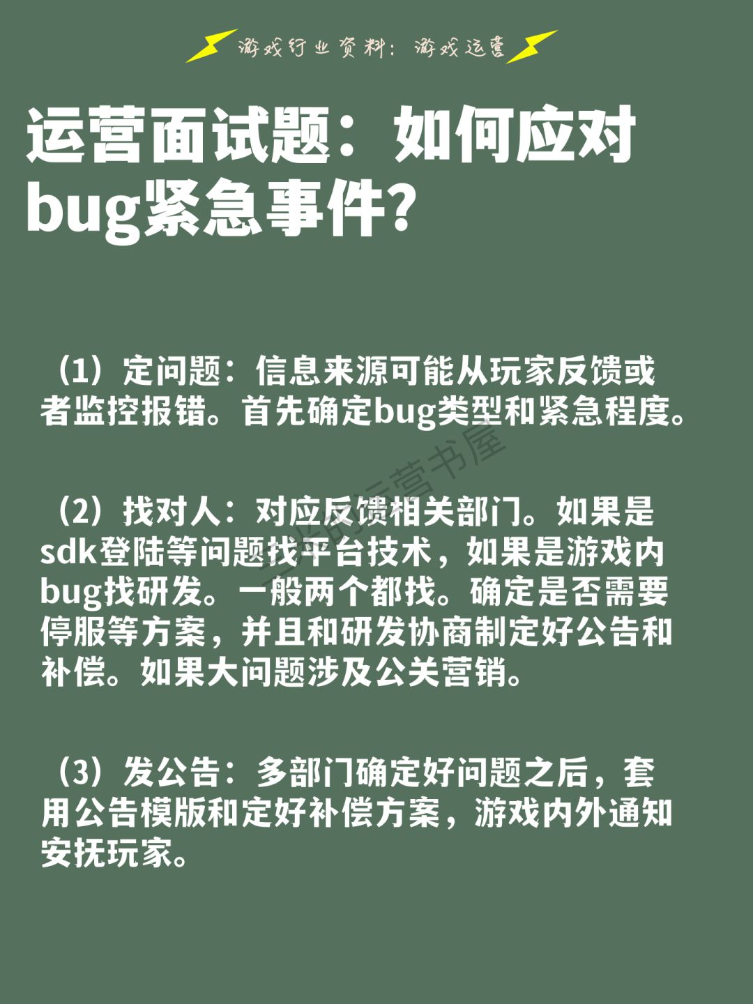 作为一款游戏的游戏运营,如果所带的游戏出现了紧急bug,你应该如何处理呢?