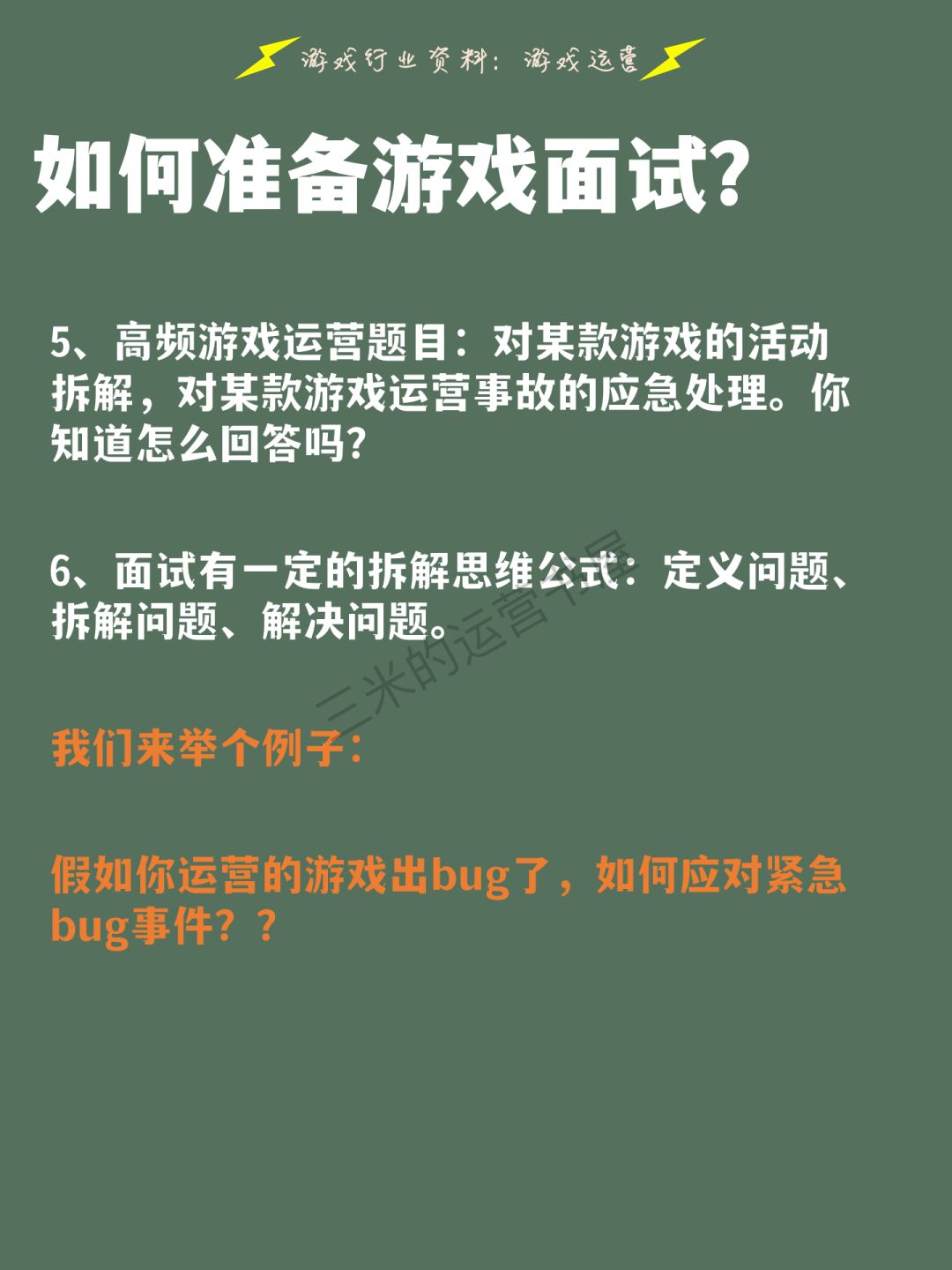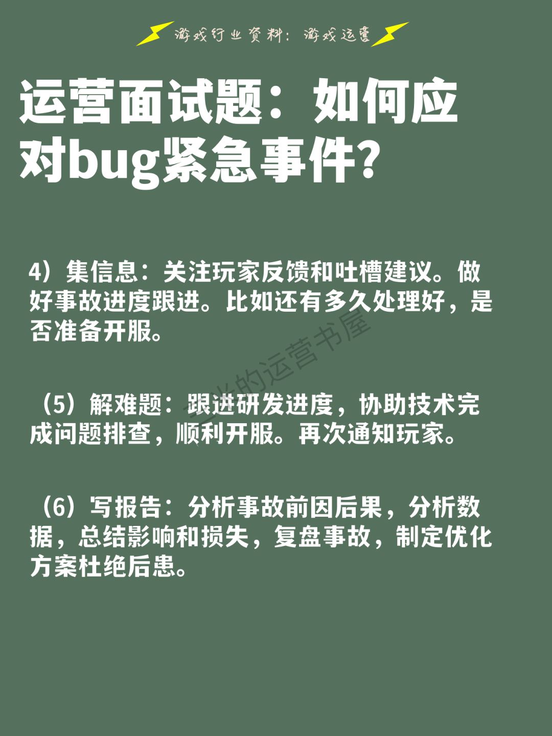 5、高频游戏运营题目:对某款游戏运营事故的应急处理。你知道怎么回答吗?