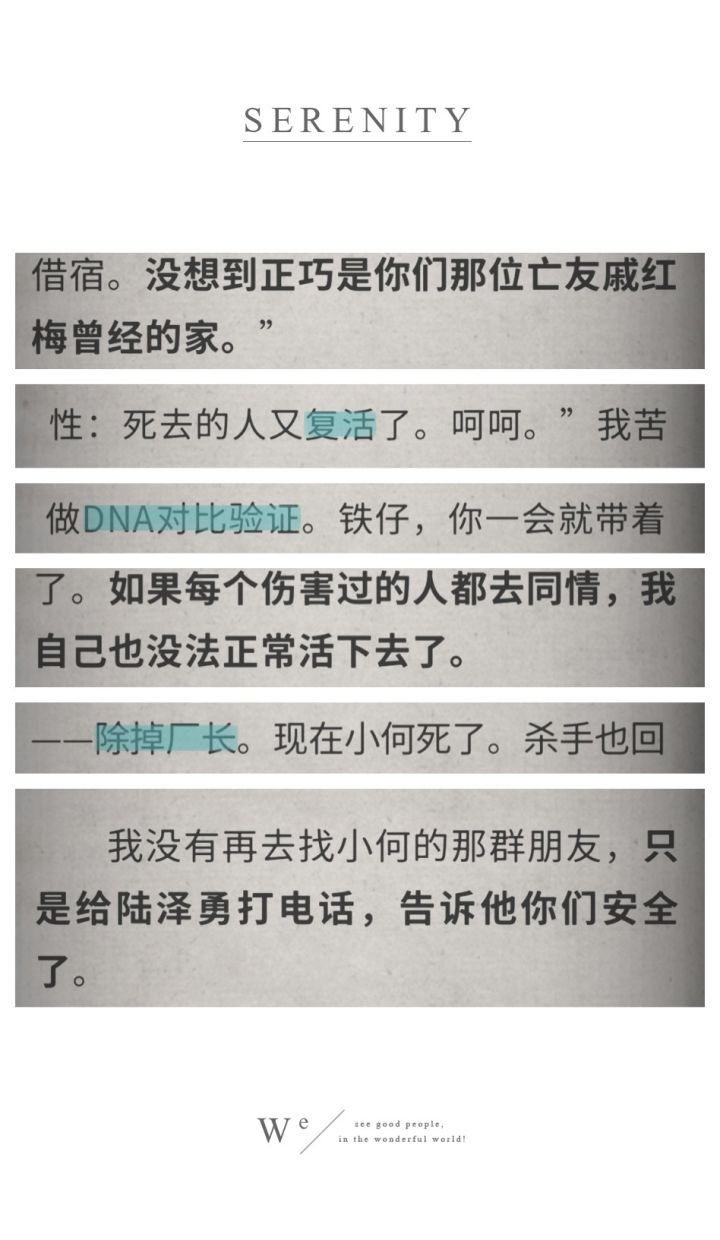 这个链接是一个up攻略主的,但是缺少最后几章线索,up没发,不过我也玩完了,所以截图发给大家看。需要的随时能看。
