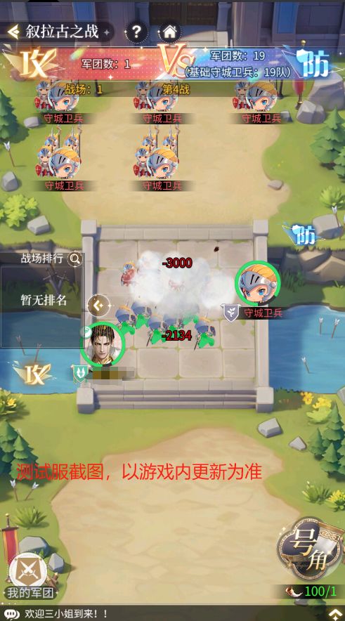 3、军团战斗:攻城期间可观看战斗过程,可通过号角加速战斗过程;