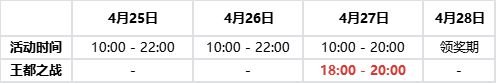 1、开启时间:4月27日 18:00 - 20:00
