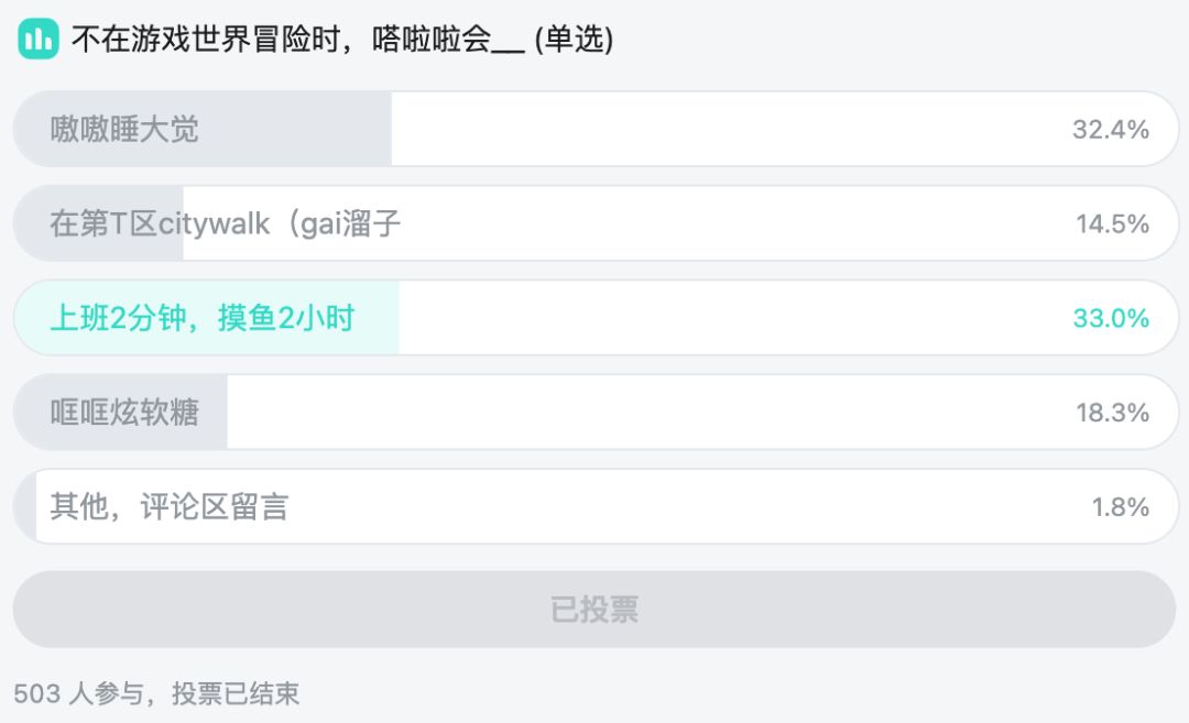 【1个赞】摸鱼玩游戏1分钟,【1个评论】认真工作1分钟