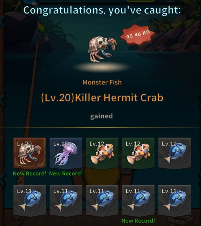 最后晒晒拉拉姆掉到的鱼王——骷髅蟹,这是10m深度的鱼王哦,其他深度都有各自的鱼王,预祝各位钓鱼大佬早日钓到鱼王。![[表情_看我的]](https://img.tapimg.com/market/images/68859b6a042187b719b1fed6a9c32f9a.png)