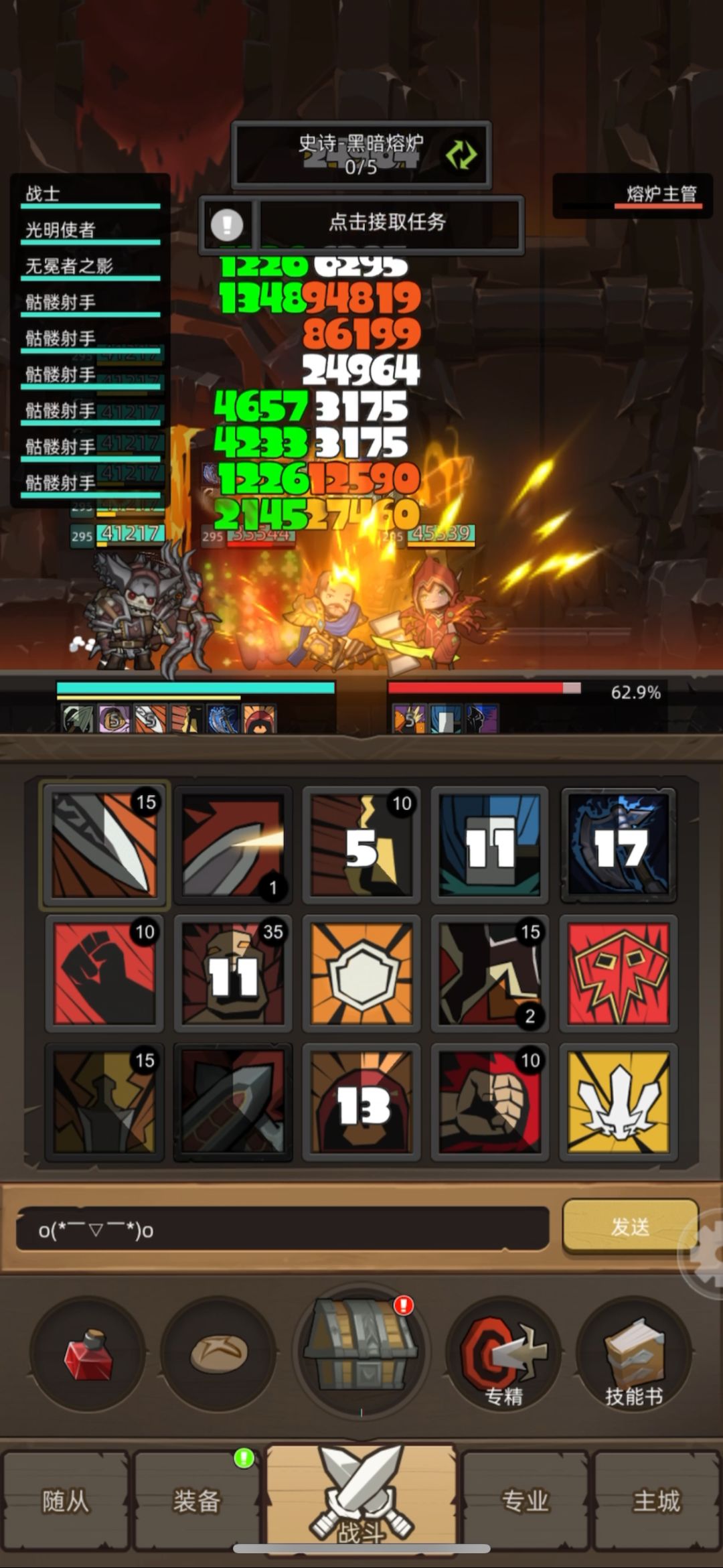 召唤6个骷髅射手用时为3.25秒(0.0,0.65,1.3,1.95,2.6,3.25六个时间点),期间6个射手将分别射出(3、2、2、1、1、0)合计9箭,以一场耗时8.25秒的BOSS战为例(每个人的BOSS战时间会有差异,可自行取值,本文为简化而取该值),整场战斗将射出9+24=33箭;
