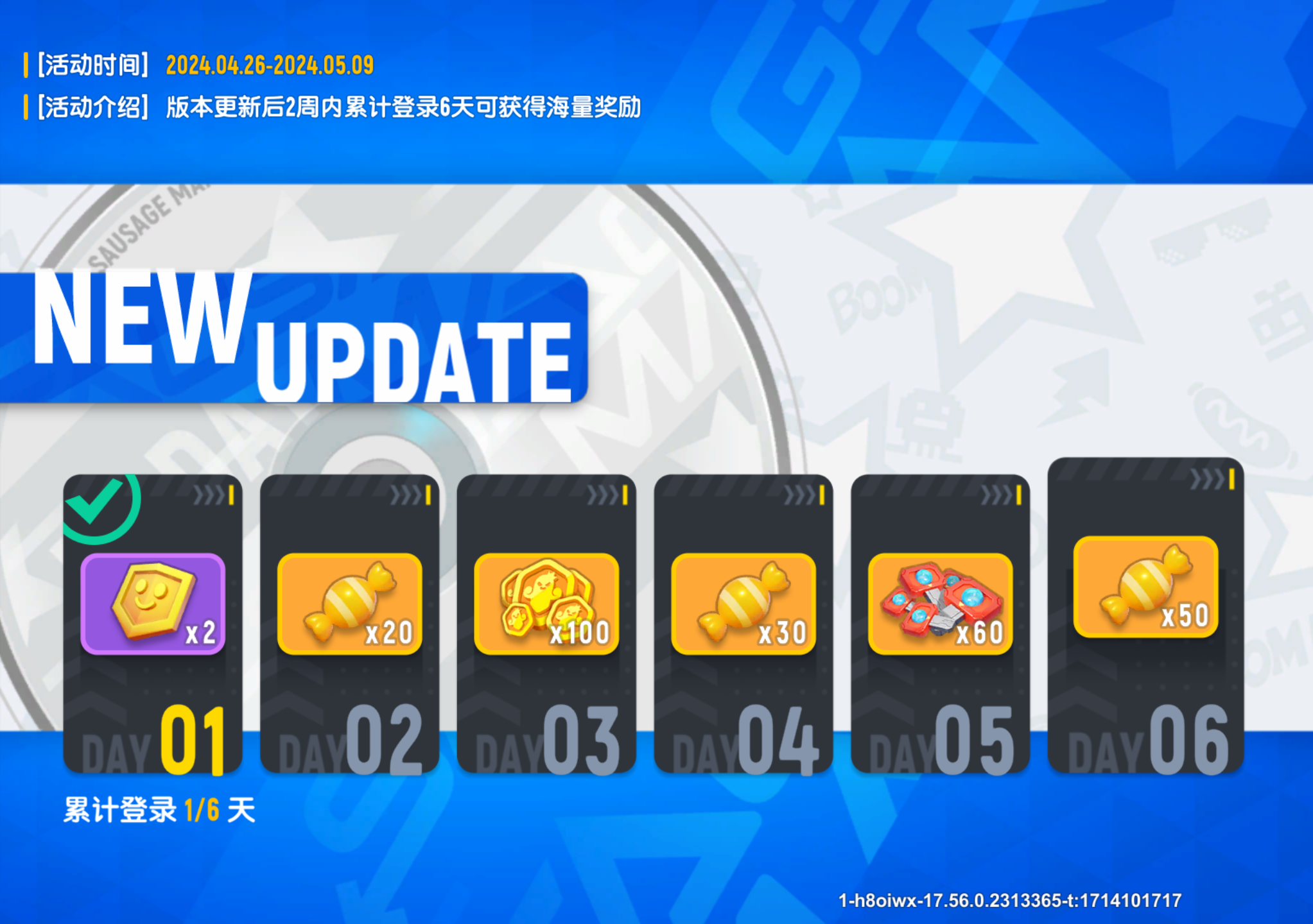 版本更新后的两周内累计登录6天即可获得