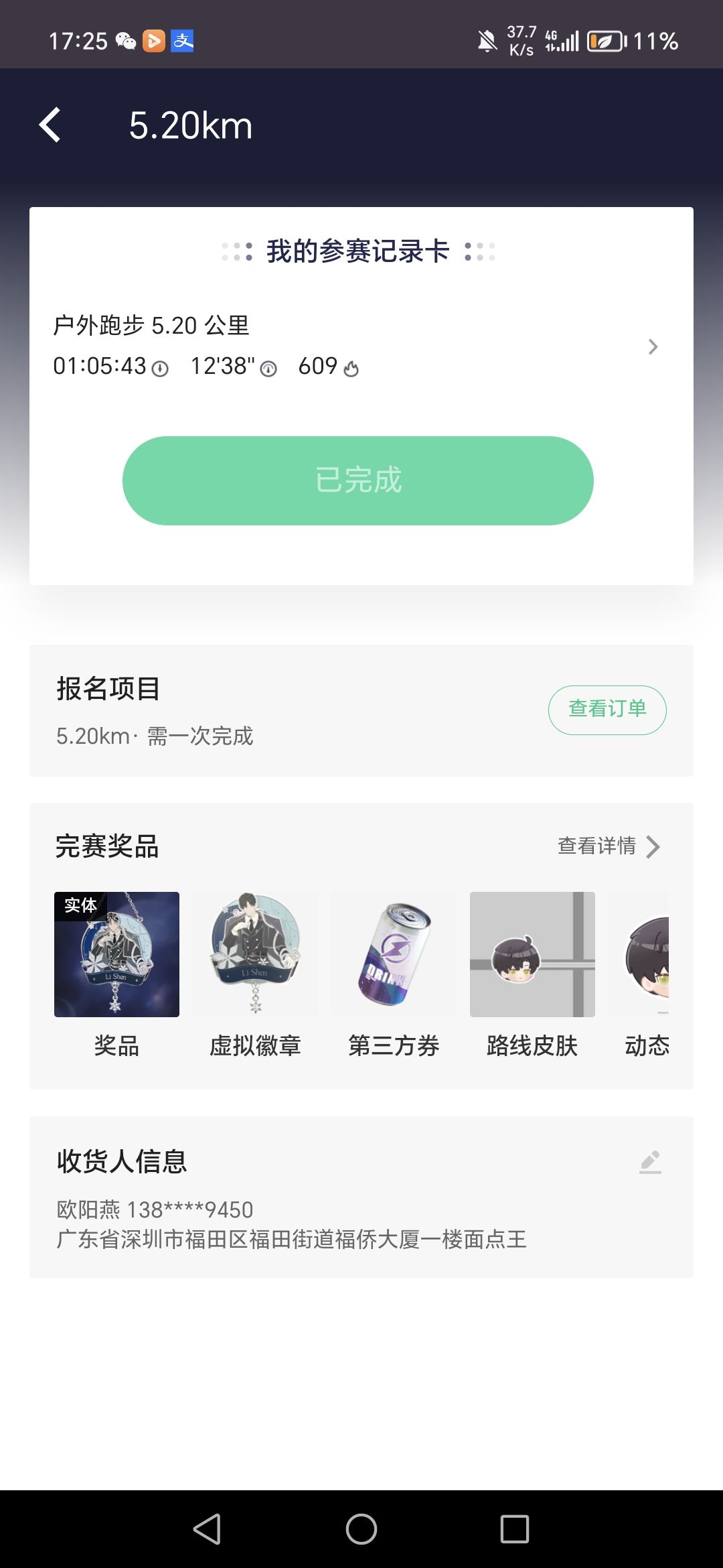 注意:可以购入多个奖牌,一次性跑5.20km剩下的提交运动记录!!!