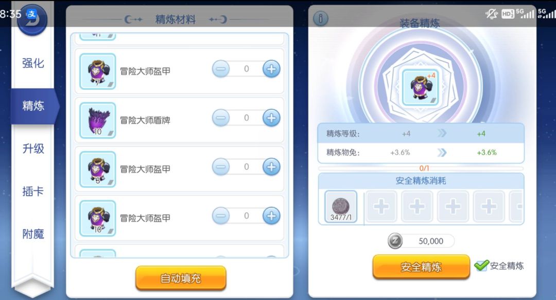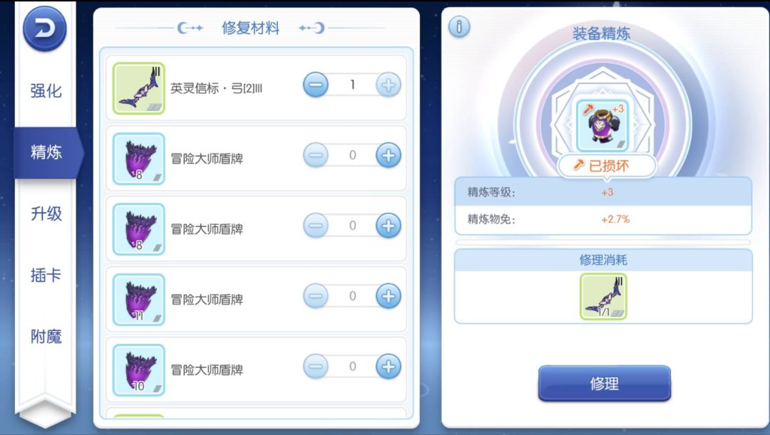 精炼修复材料可以直接用装备,但是开洞不可以。