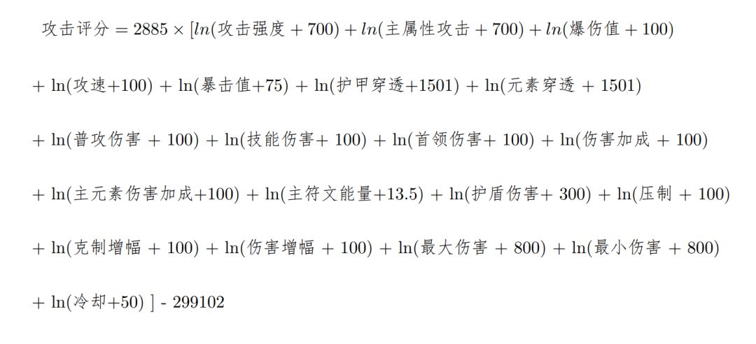 首先我们要知道新版攻击评分是如何计算出来的,先给出公式: