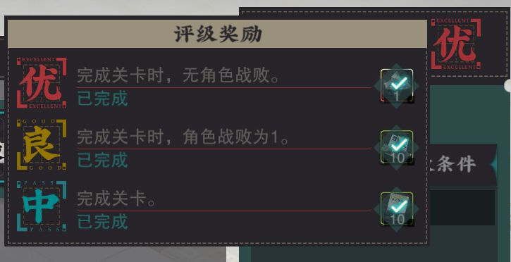 首通就是首次通关,会送器者考核材料、装备材料、牡丹饼、冬谷币等;每个关卡有2个隐藏挑战,完成1个挑战就送30灰珀,2个都完成就可以得60灰珀;每个关卡设优、良、中三个评级,优送异形彩珀,良送器者考核材料,中送器者经验书。